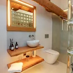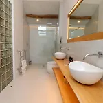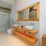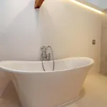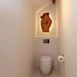 تشتمل مرافق الحمام أيضًا على مقصورة الدوش والمرحاض المنفصل.